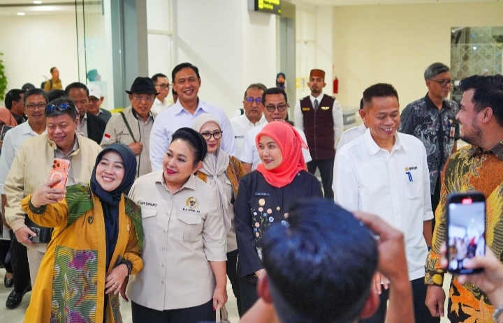 Makassar- Wakil Wali Kota Makassar, Aliyah Mustika Ilham, menyambut kedatangan Ketua Komisi IV DPR RI, Siti Hediati Soeharto, bersama rombongan dalam rangka Kunjungan Kerja Panitia Kerja (Panja) Pengawasan Penyerapan Gabah dan Jagung di Provinsi Sulawesi Selatan. Penyambutan berlangsung di Bandara Internasional Sultan Hasanuddin Makassar, Jumat (28/11/2025).
