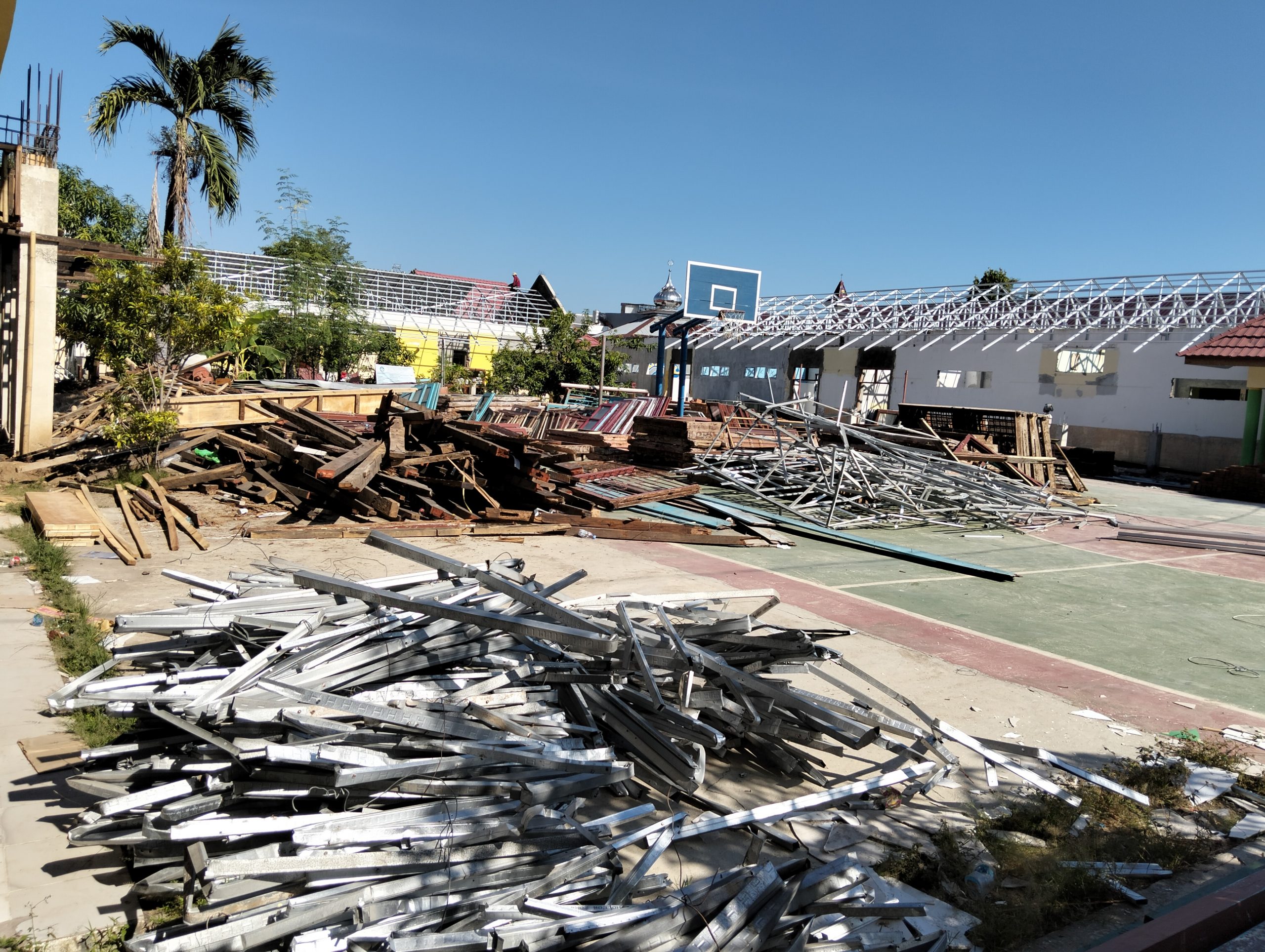 Sejumlah pekerja terlihat bekerja tanpa pengawasan ketat dari konsultan proyek. Bahkan, beberapa material bekas tampak dibiarkan menumpuk di lapangan basket sekolah, menimbulkan kesan proyek ini dikerjakan seadanya tanpa manajemen konstruksi yang baik.