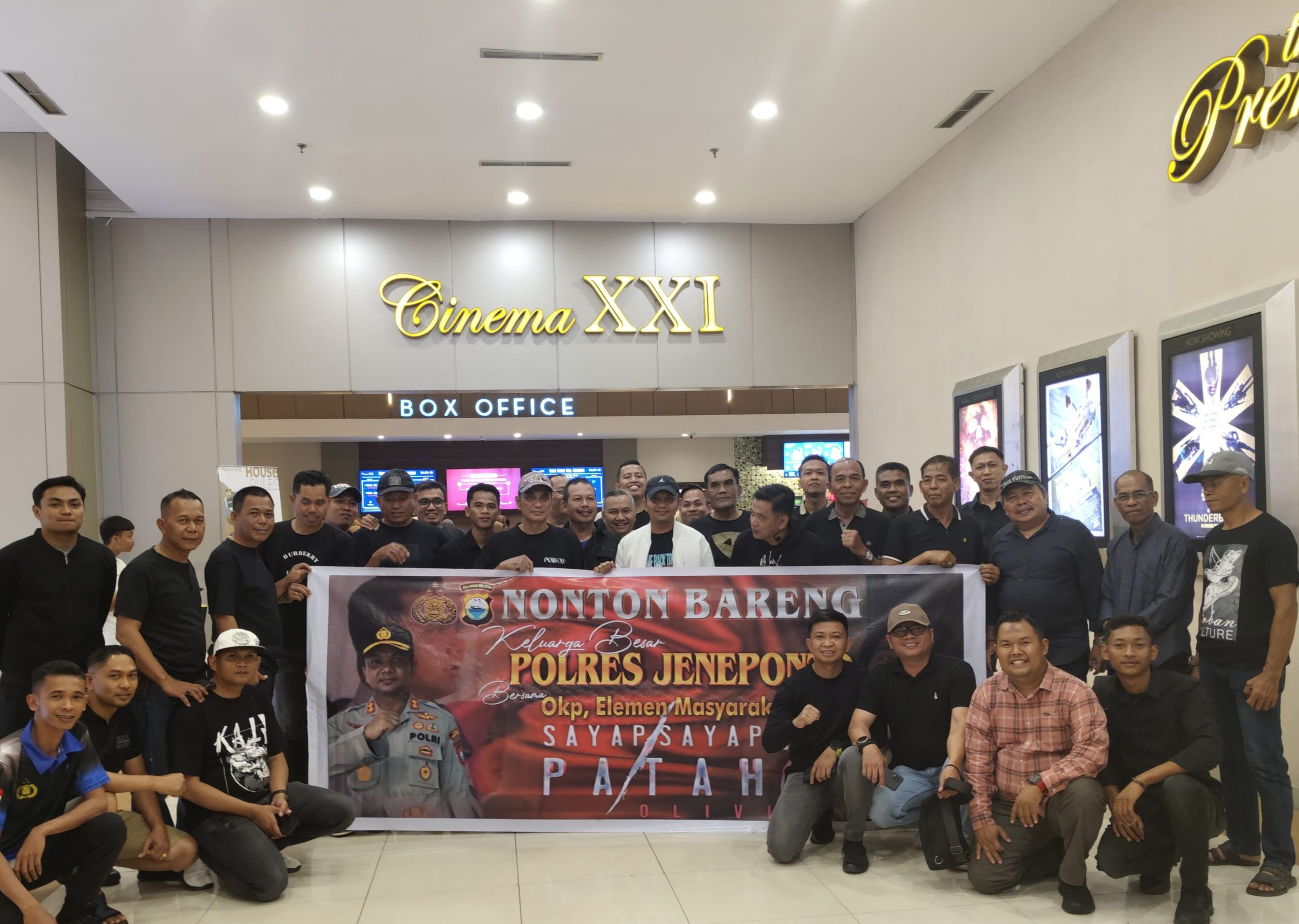 Makassar – Keluarga besar Polres Jeneponto, Polda Sulsel, dibawah pimpinan Kapolres Jeneponto AKBP Widi Setiawan, S.I.K., M.I.K., melakukan nonton bareng (nobar) film Sayap-Sayap Patah 2 di Studio XXI, Mall Trans Studio Makassar. Kegiatan ini diikuti oleh sebagian personil Polres Jeneponto dan Jajarannya beserta keluarganya. Minggu, 18/05/2025.