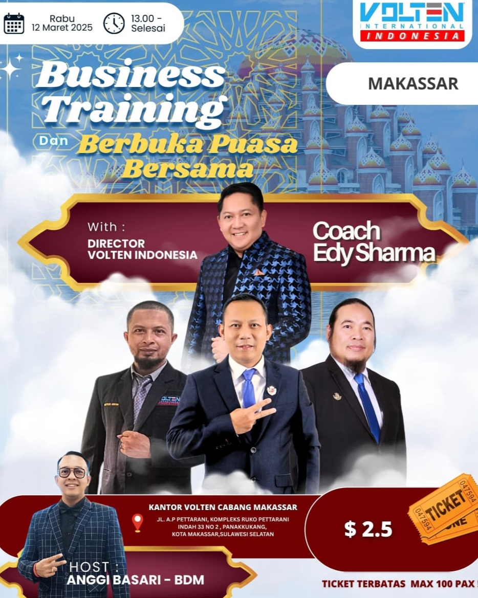 Volten Indonesia dengan bangga mempersembahkan “BUSINESS TRAINING DAN BERBUKA PUASA BERSAMA COACH EDY SHARMA”.