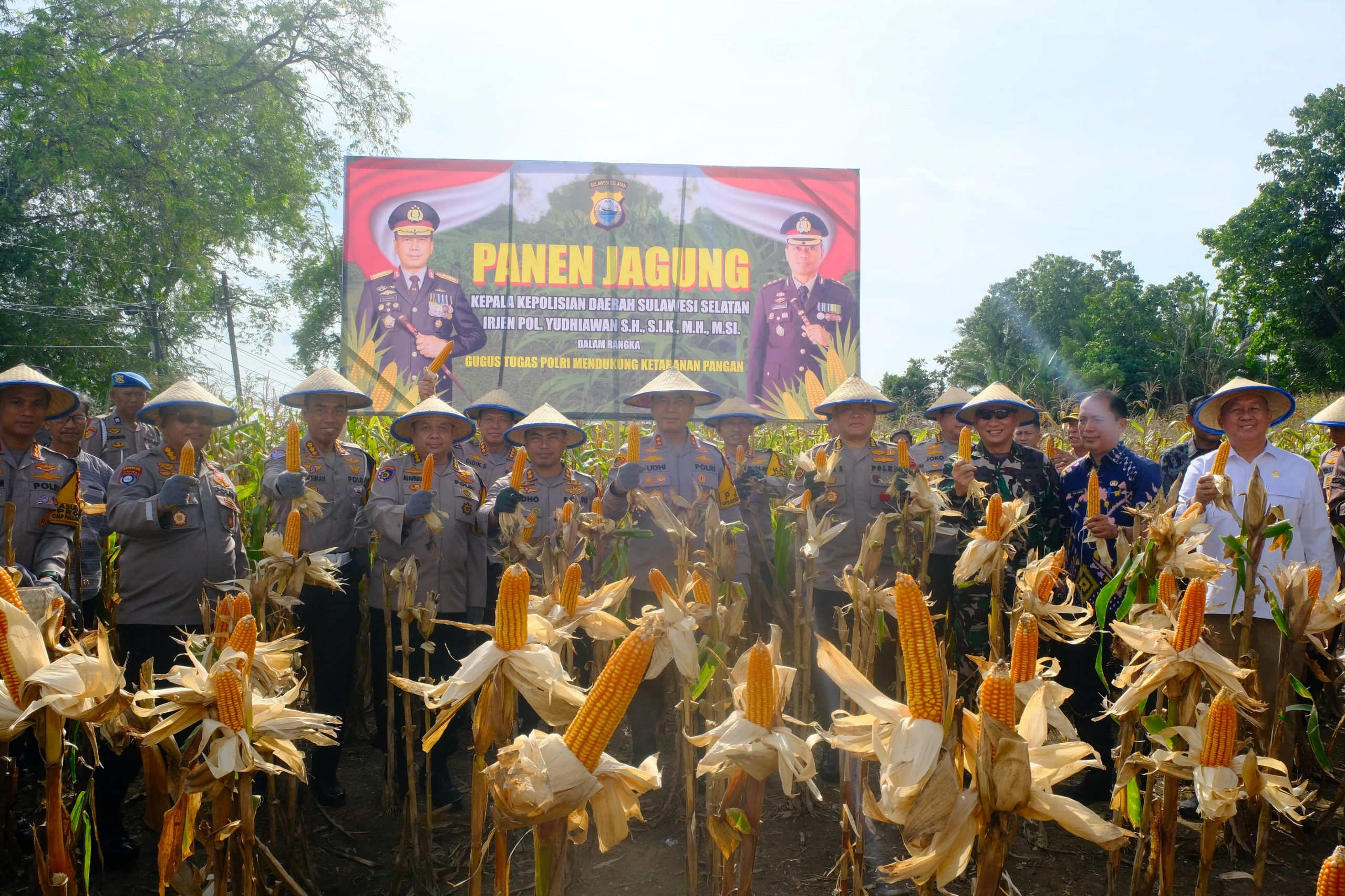 Kapolda Sulawesi Selatan, Irjen Pol. Yudhiawan S.H., S.I.K., M.H., M.Si., didampingi Ketua Bhayangkari Daerah Sulsel, Ny. Yunita Yudhiawan, menghadiri langsung panen jagung dalam rangka Program Ketahanan Pangan di Desa Simpurusia, Kecamatan Pammana, Kabupaten Wajo. Kegiatan ini merupakan bagian dari program ketahanan pangan yang dilaksanakan secara serentak di 50 titik di tujuh kabupaten di Provinsi Sulawesi Selatan.