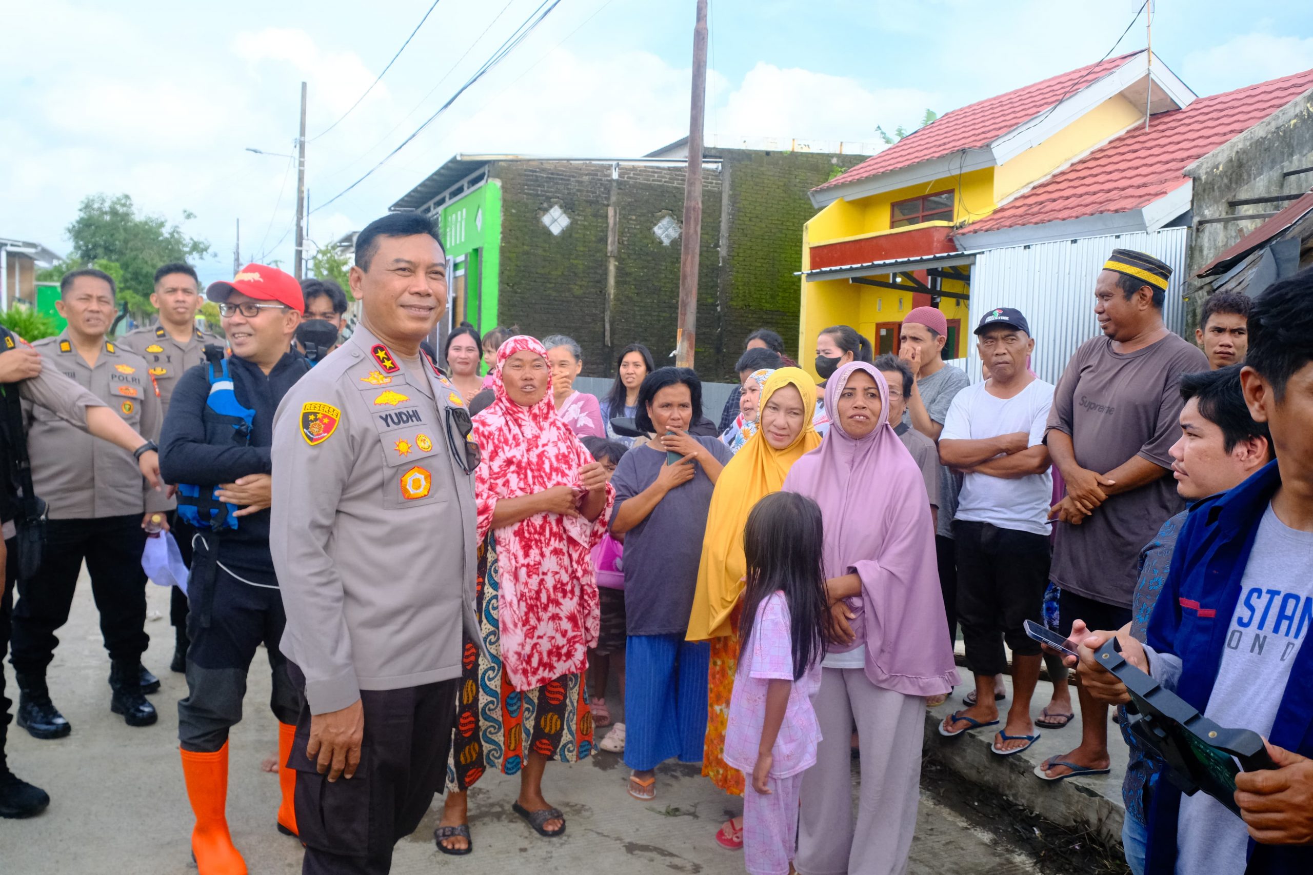 Setelah meninjau dan menyerahkan bantuan di Masjid Raya Baruga Antang, Kapolda dan rombongan melanjutkan kunjungan ke lokasi banjir di Blok 8 dan Blok 10 Perumnas Antang, Kelurahan Manggala. Setibanya di lokasi, rombongan menyeberang menggunakan perahu karet milik Polairud dan Basarnas untuk menyalurkan bantuan kepada warga yang terdampak.