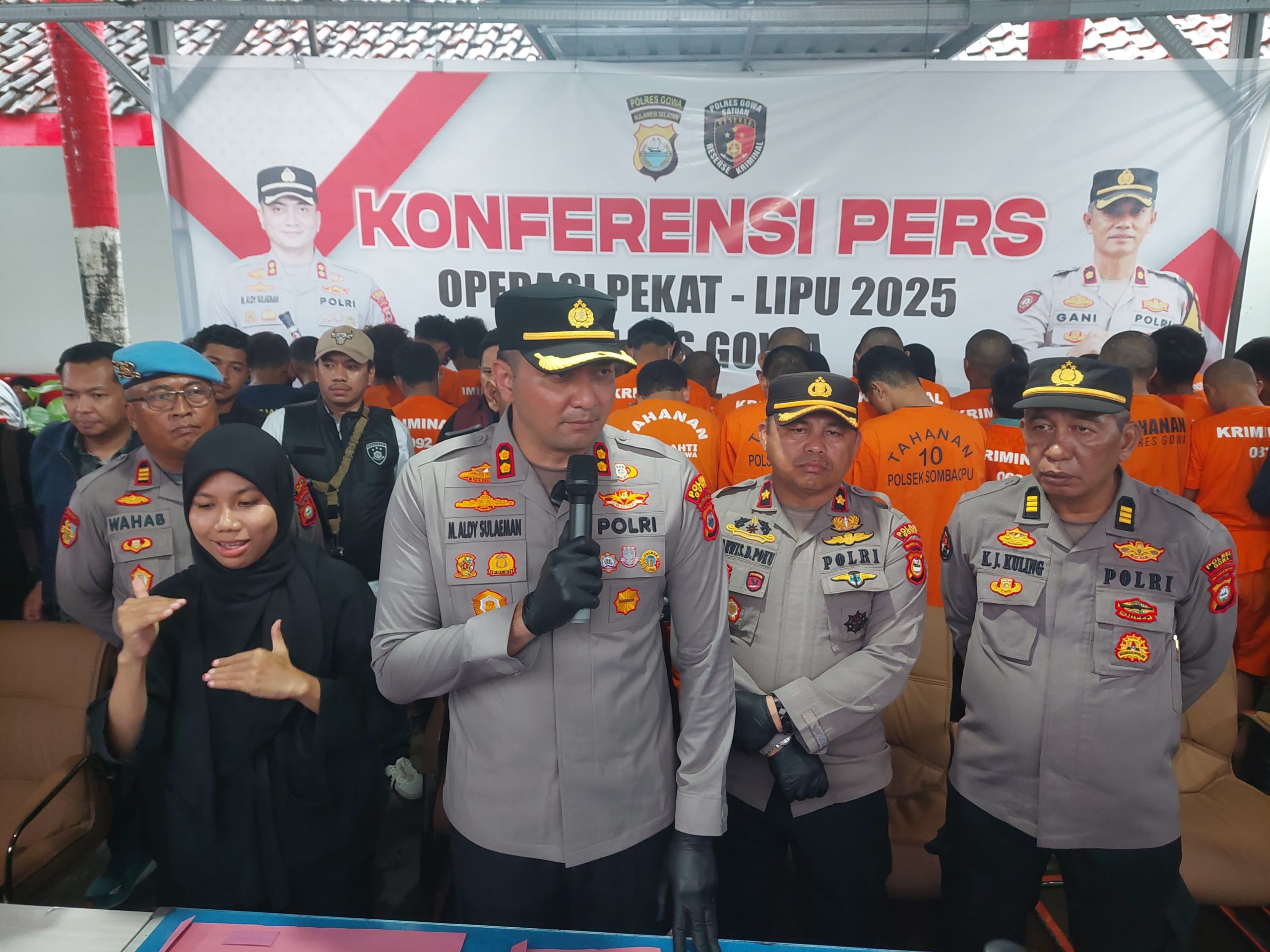 Kapolres Gowa, AKBP Muh. Aldy Sulaiman, S.I.K., M.Si, memimpin langsung jalannya konferensi pers terkait rilis hasil Operasi Penyakit Masyarakat (PEKAT) LIPU 2025 yang digelar di halaman Mapolres Gowa pada Jumat (23/5/2025).