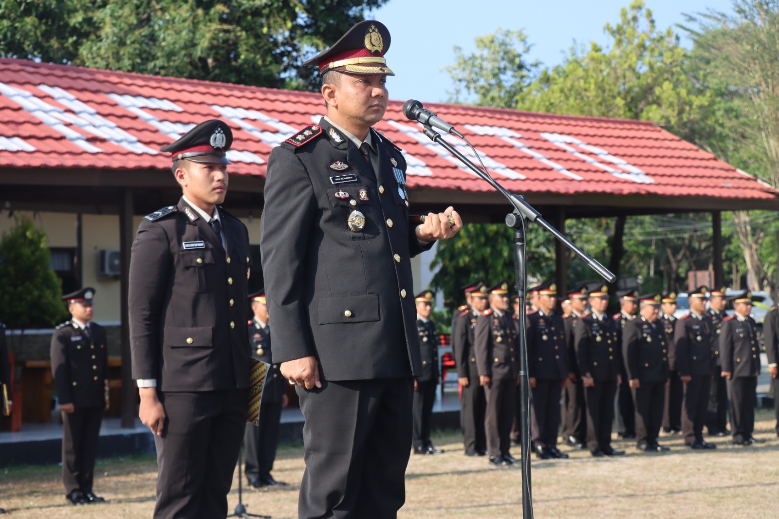 Pada kesempatan itu, AKP Syahrul Rajabia, S.T., M.H. dipercaya sebagai Perwira Upacara, sementara Ipda Aswar TS bertindak sebagai Komandan Upacara.
