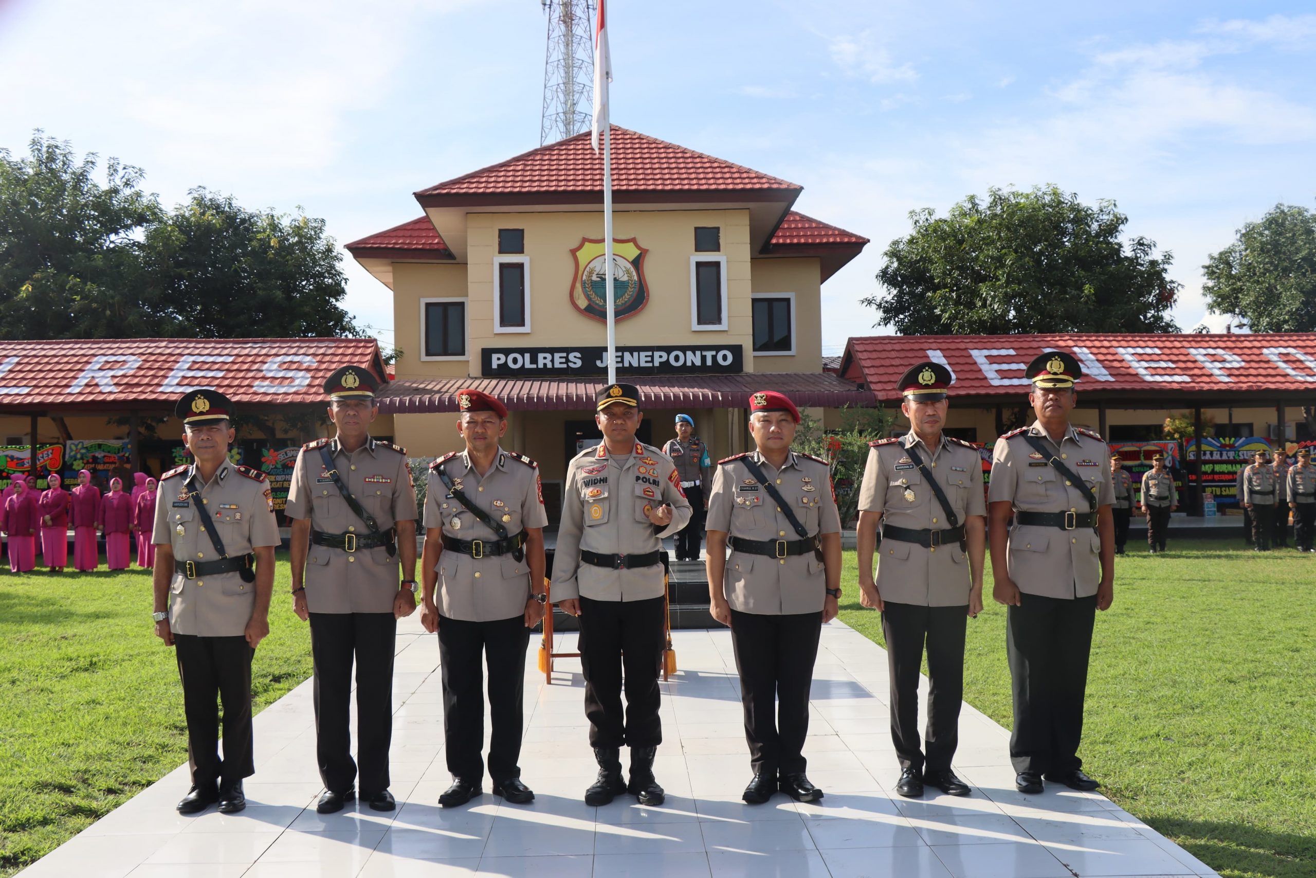 Upacara ini dihadiri secara lengkap oleh seluruh Pejabat Utama Polres Jeneponto, para perwira, personel, serta perwakilan Bhayangkari Cabang Jeneponto.
