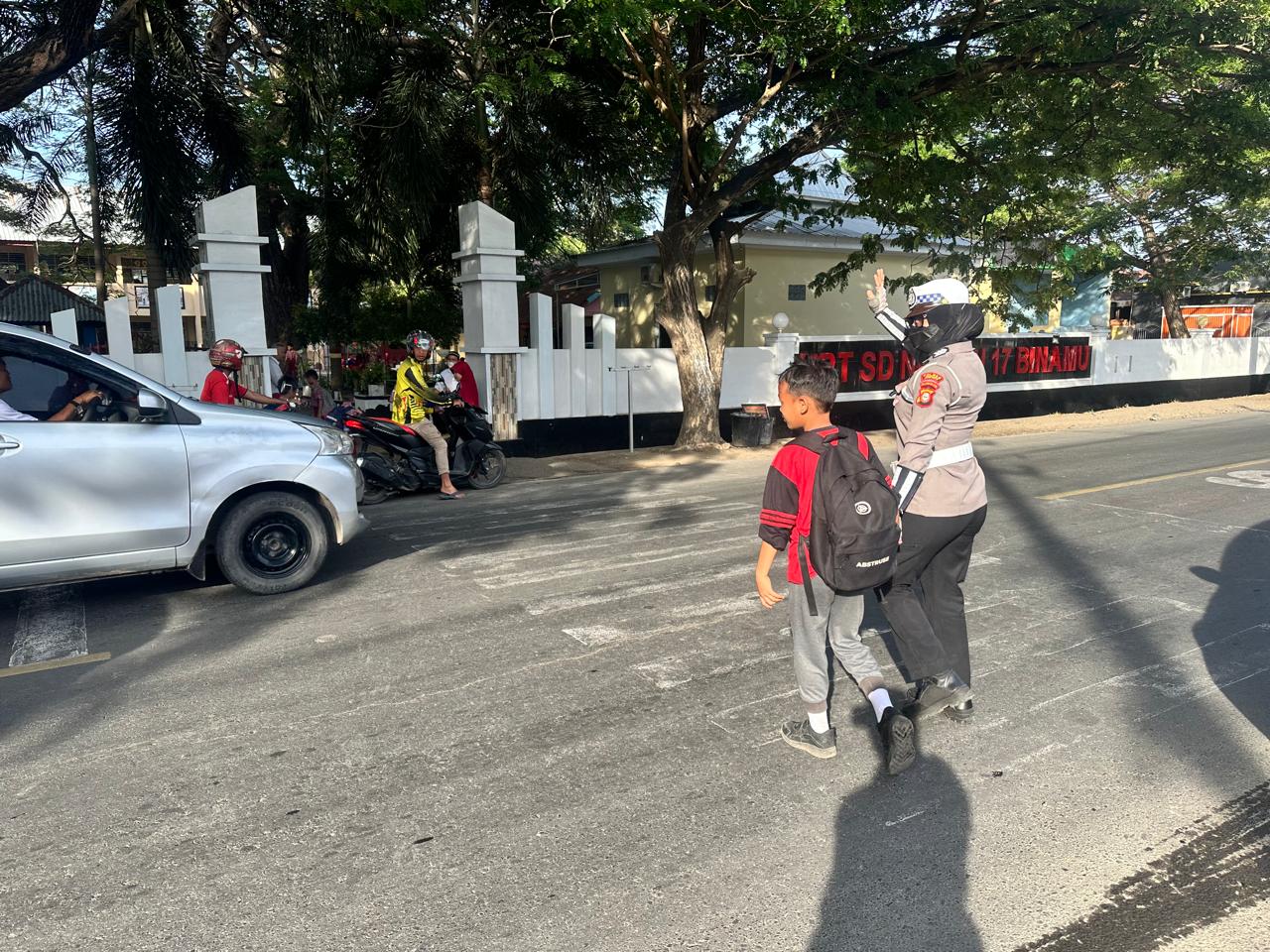 Selain melakukan pengaturan untuk mengantisipasi kemacetan, petugas juga aktif memberikan bantuan. Tidak jarang terlihat personel dengan sabar menyeberangkan anak-anak sekolah dan membantu warga lanjut usia. Imbauan untuk tertib berlalu lintas dan menjaga keselamatan juga terus disampaikan kepada pengendara.
