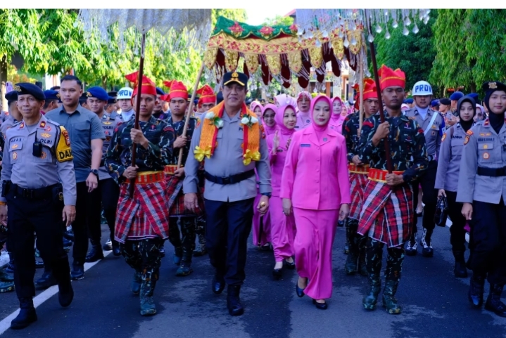 Irjen Pol. Djuhandhani Rahardjo Puro bersama Ny. Upi Djuhandhani menyapa satu per satu jajaran personel Polda Sulsel yang berbaris menyambut kedatangannya. Momen tersebut berlangsung hangat dan penuh kekeluargaan, mencerminkan semangat soliditas di lingkungan Polda Sulsel.