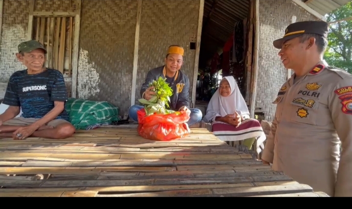 Sebagai bentuk kepedulian, Kapolres membawa bantuan, selain itu, ia juga menyempatkan diri untuk masuk ke dalam rumah dan melihat langsung kondisinya yang kurang layak huni.