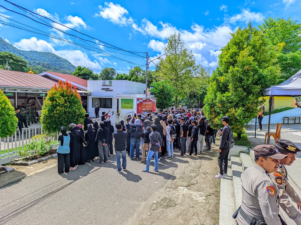 Enrekang – Ratusan demonstran mengatasnamakan Aliansi Mahasiwa Dan Masyarakat Peduli Enrekang geruduk kejakasaan Negri ( Kejari ) Enrekang terkait kriminalisasi dan pemerasan komisioner baznas oleh Eks Kejari di Jalan Pancaitana Bungawalie, Kelurahan Galonta, Kecamatan Enrekang, Kabupaten Enrekang, Sulawesi Selatan Rabu (3/12/2025).