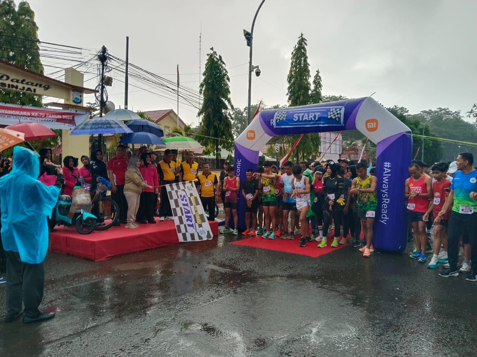 Sinjai – Dalam rangka menyambut Hari Bhayangkara ke-79, Kepolisian Resor Sinjai menggelar kegiatan Bhayangkara Fun Run pada Jumat pagi, 20 Juni 2025. Meski diguyur hujan sejak dini hari, ratusan peserta dari berbagai kalangan tetap antusias mengikuti kegiatan lari sejauh 7,9 kilometer tersebut.