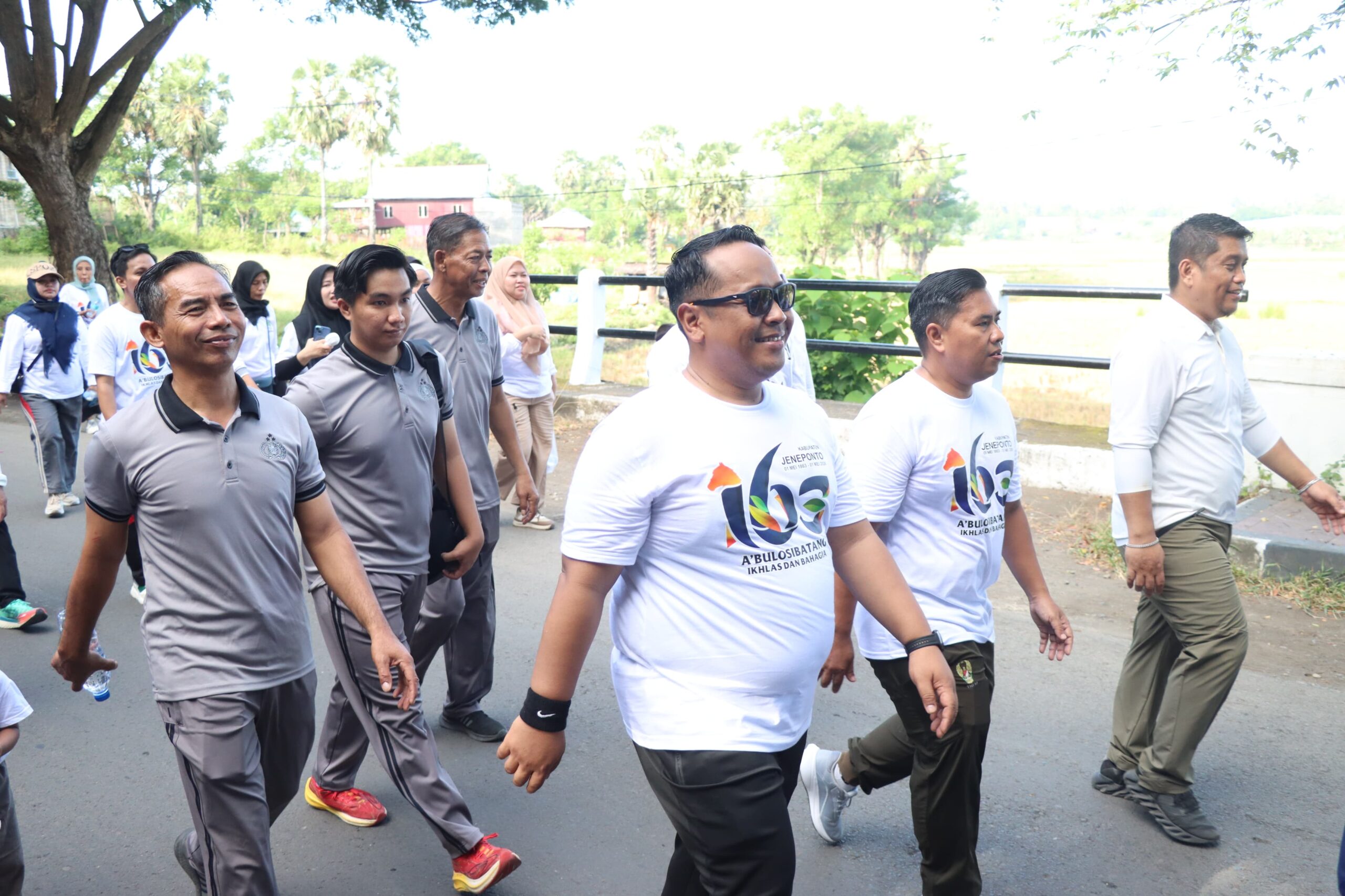 Kegiatan yang berlangsung meriah ini dihadiri langsung oleh Bupati Jeneponto H. Paris Yasir serta unsur Forkopimda lainnya. Kehadiran tokoh-tokoh daerah dan aparat keamanan dalam satu barisan berjalan santai menunjukkan kekompakan dan sinergi yang baik antara pemerintah, kepolisian, dan masyarakat.