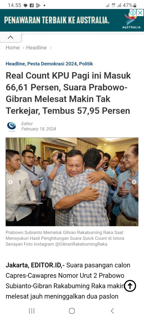 Hari ini saya mendapat kehormatan diterima oleh presiden keenam Repulik Indonesia, Bapak Susilo Bambang Yudhoyono dengan seluruh keluarganya,” kata Prabowo kepada wartawan, Sabtu (17/2/2024.